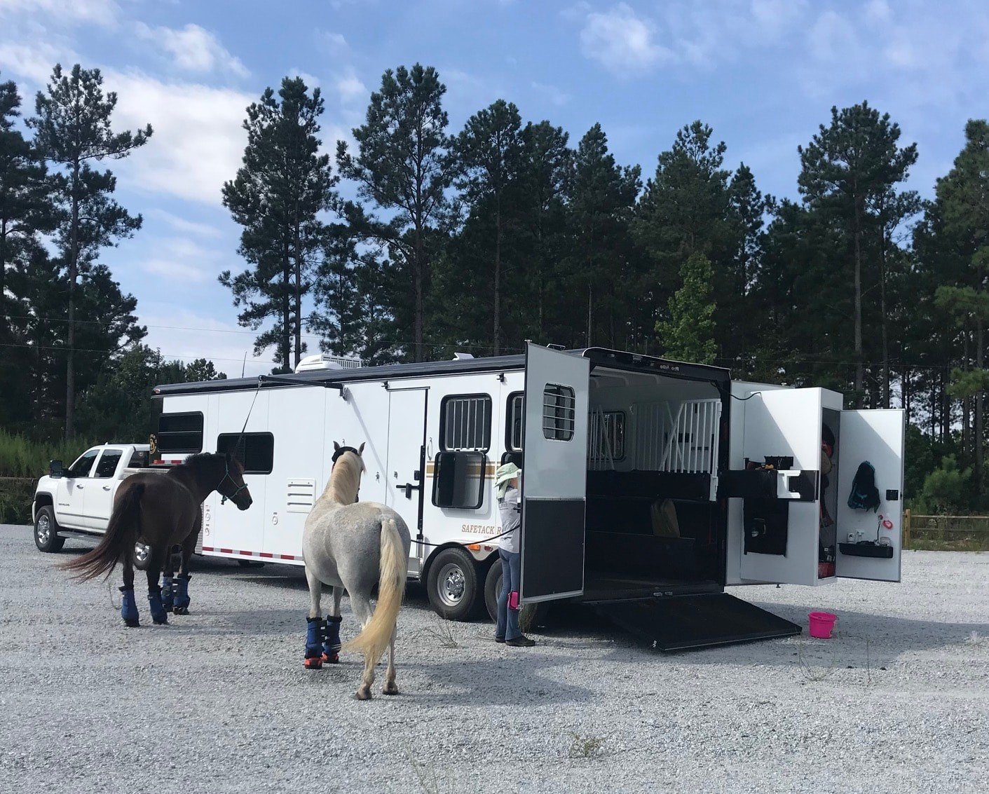 Tom from Florida has three horses and a pony. He and his wife are retired and love to go on vacation with their horses all over the country. When their old trailer wore out, Tom and his wife decided to go with a 3 Horse SafeTack Bumper Pull Trailer.