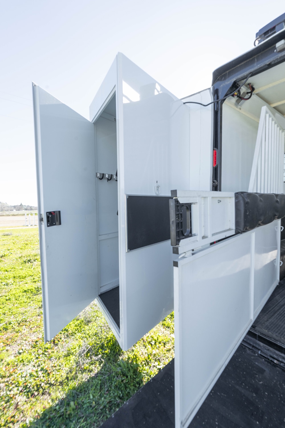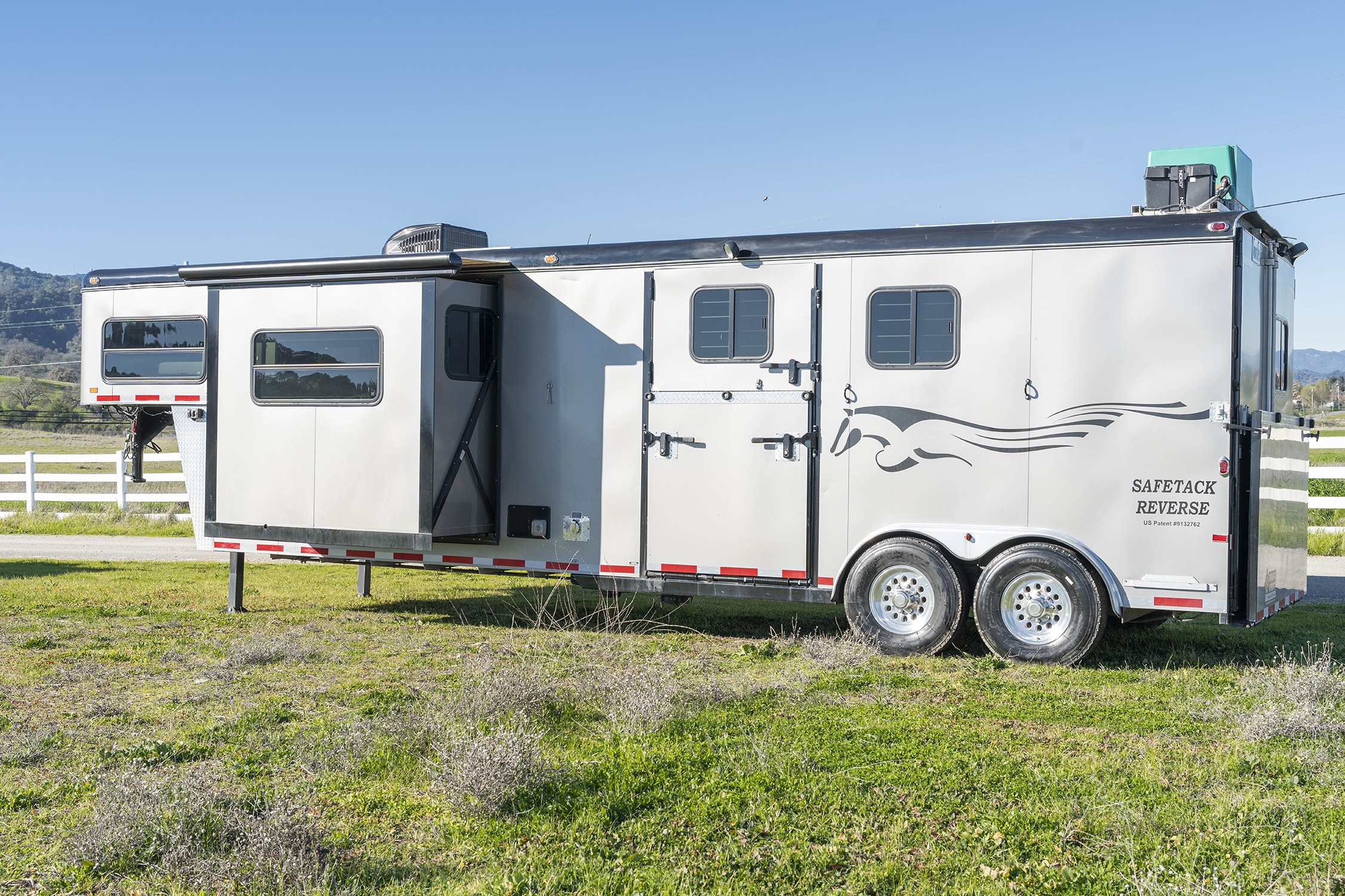 This is a 2-Horse reverse load only Safetack trailer with 13' short wall living quarters. The living quarters is in immaculate condition and well-maintained. Many upgrades included (see specs).