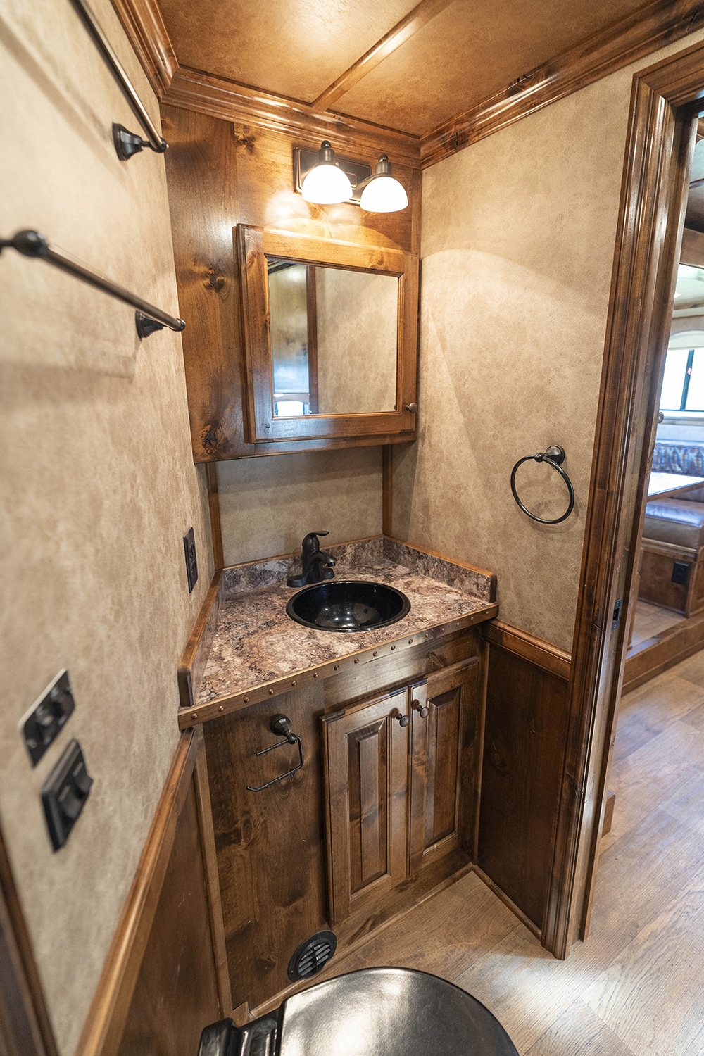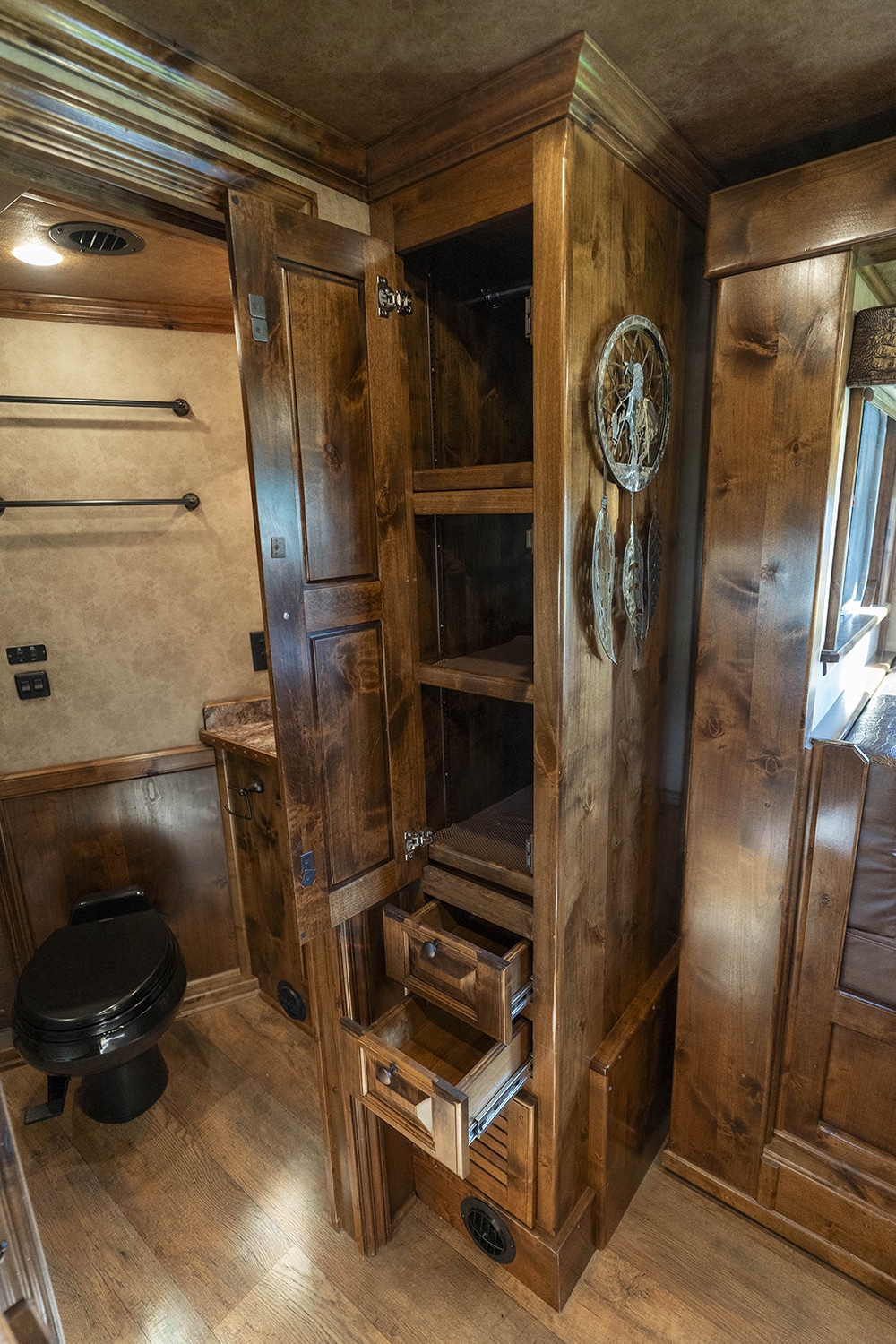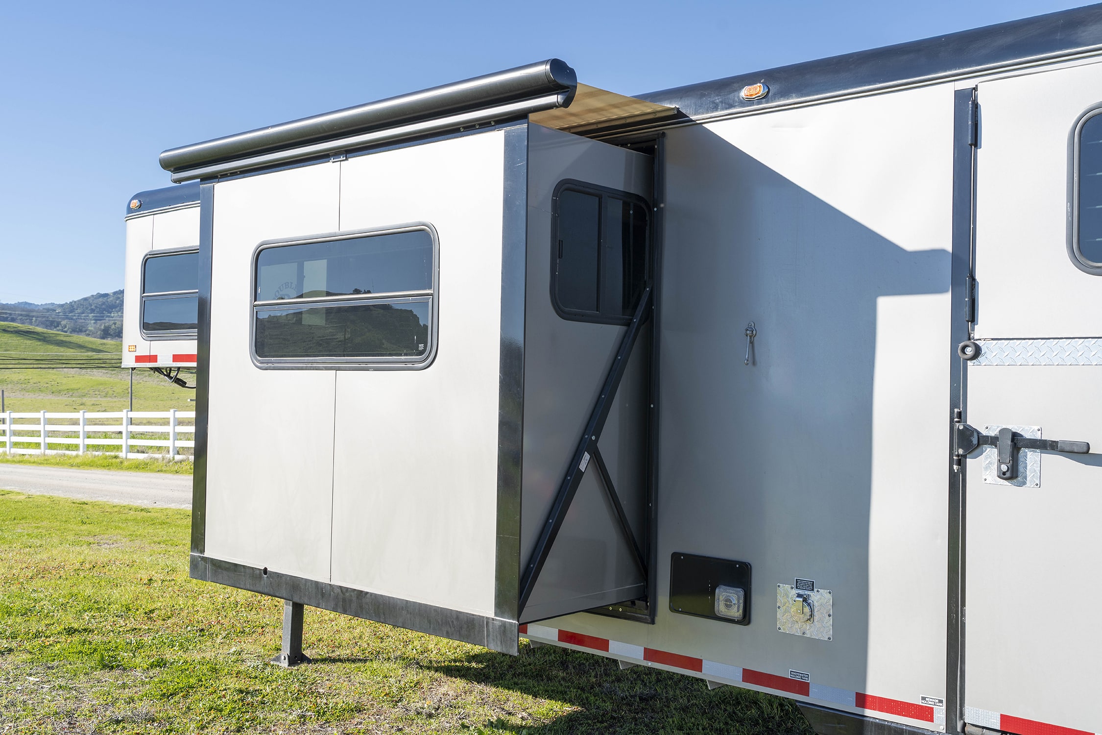 The trailer is built to fit up to two 17.2H Warmblood sized horses. There is additional storage available with the storage/feed manger in the back stall.