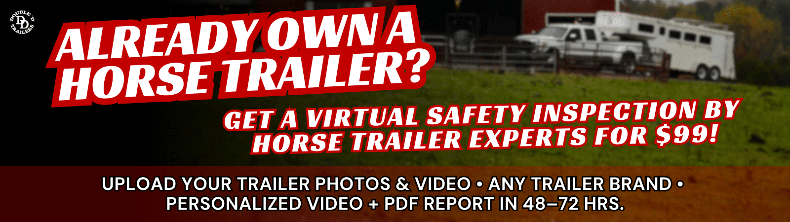 If you own a horse trailer and want an experienced and professional safety review, this inspection is for you. This inspection is designed for owners who are actively hauling horses or preparing to haul in the near future.